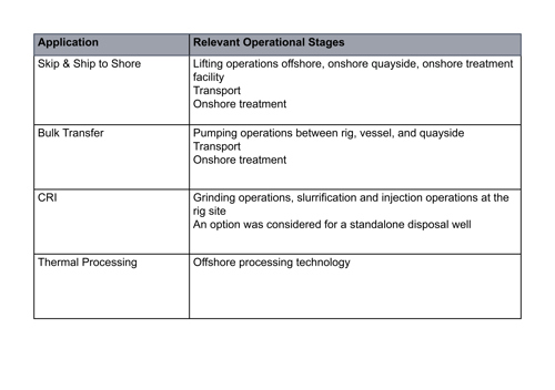 With both skip and ship or bulk transfer operations, onshore treatment of oil-based drill cuttings is required and as such, emissions related to this must be considered.